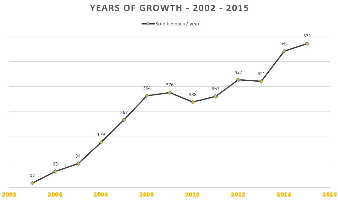 Die Welle des Erfolges ebbte auch danach nicht ab, es folgten unmittelbar einige Jahre des raschen Wachstums. Von 17 Lizenzen im Jahr 2003 schnellten die Lizenzverkäufe in die Höhe, 2015 wurden 571 neue IACBOXen verkauft. Heute darf sich die IACBOX über beste Verkaufszahlen, treue Kunden, fest angestellte Mitarbeiter und ein kerngesundes Unternehmen freuen, das sich selbst ganz ohne Investoren und Kredite finanziert.